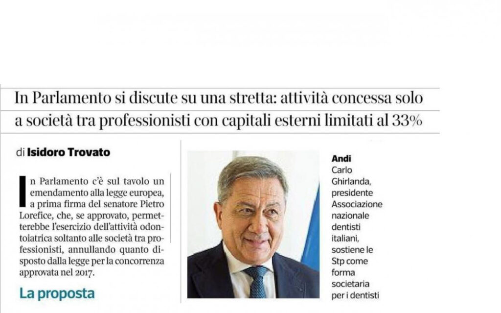 L’inserto Economia del Corriere ospita l’intervista al Presidente nazionale ANDI sul tema dell’esercizio della professione odontoiatrica in forma societaria.