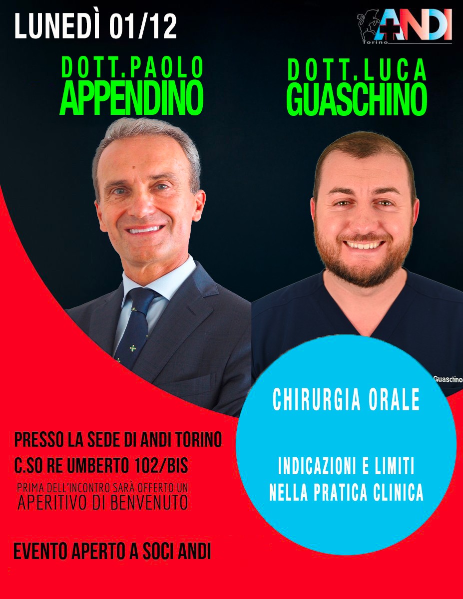 “I relatori della serata – dichiara Gabriele Falliti, Segretario culturale – saranno i dottori Paolo Appendino, Direttore della Struttura Complessa di Odontostomatologia dell’Azienda Ospedaliera Mauriziano di Torino con attività clinica dedicata prevalentemente alla chirurgia orale ed alla gestione protesica del paziente oncologico, e Luca Guaschino, entrambi consiglieri della nostra Sezione provinciale.
