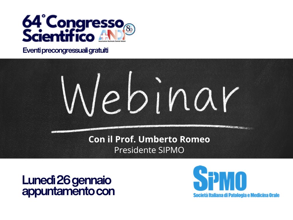 Lunedì 26 gennaio, alle ore 20:00, incontro con la SIPMO – Società Italiana di Patologia e Medicina Orale e con il suo Presidente e relatore, Prof. Umberto Romeo.