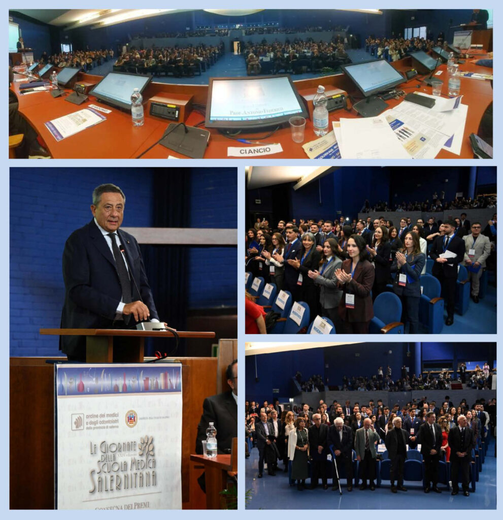 La cerimonia, che si è tenuta all’Università degli studi di Salerno, alla presenza di un nutrito parterre di autorità in rappresentanza delle maggiori Istituzioni civili, militari e religiose, dopo l’introduzione del Presidente dell’Ordine dei Medici e degli Odontoiatri della provincia di Salerno, Giovanni D’Angelo e del rettore dell’Università degli studi di Salerno, Virgilio D’Antonio, è proseguita con la consegna dei “Premi internazionali Scuola Medica Salernitana”.